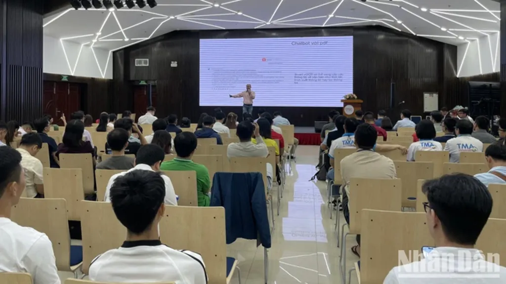 | Lors d'un colloque sur les solutions d'IA pour les entreprises vietnamiennes, le 28 juin au parc logiciel Quang Trung, à Hô Chi Minh-Ville. |