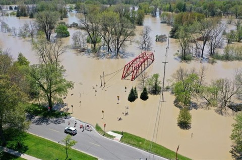 | Vue aérienne des inondations à Midland, dans le Michigan, le 20 mai. |