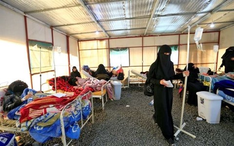 | Des Yéménites reçoivent des soins contre le choléra dans un centre médical de la capitale Sanaa, le 18 mars |