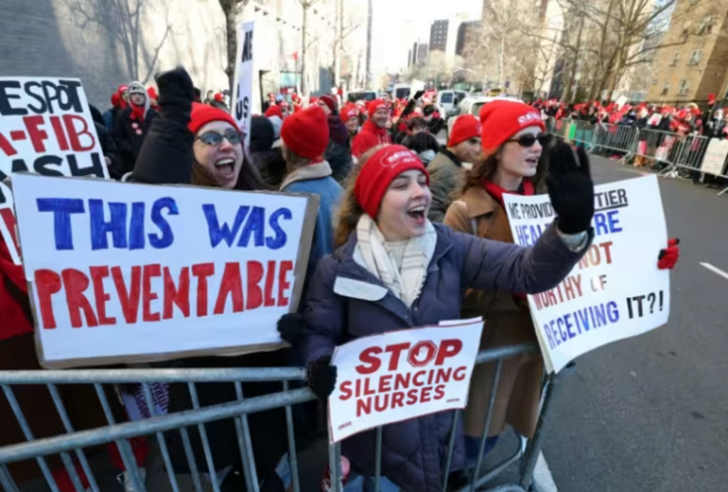 Dans un décret signé le 9 janvier, la gouverneure de l'État de New York, Kathy Hochul, a estimé que ce mouvement social, en plein pic des maladies hivernales, risquait d'avoir "un impact sur la disponibilité et la prestation des soins, menaçant ainsi la santé publique".