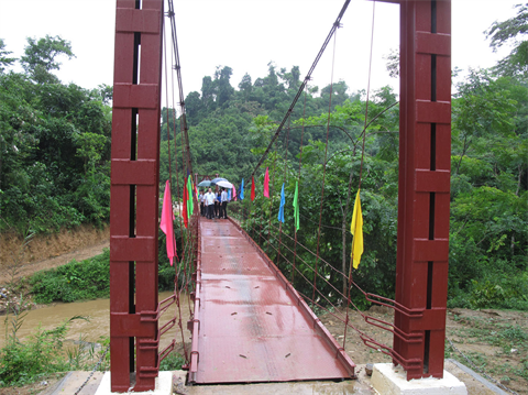 | Un petit pont à hauban ouvert au trafic dans la province de Bac Kan (Nord). |