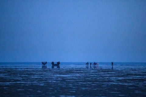 | Des migrants prêts à traverser la Manche sur des embarcations de fortune, sur la plage de Gravelines, près de Dunkerque, en septembre 2020. |