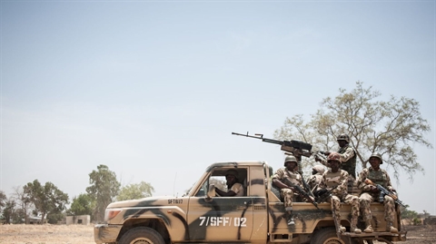 | Des soldats nigérians en patrouille le 25 mars à Chibok dans le Nord-Est du pays |