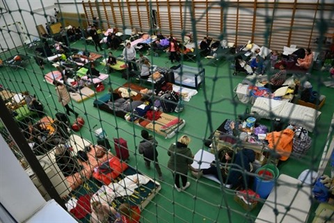 | Un centre d'accueil pour les réfugiés ukrainiens, le 28 février à Tiszabecs, en Hongrie. |