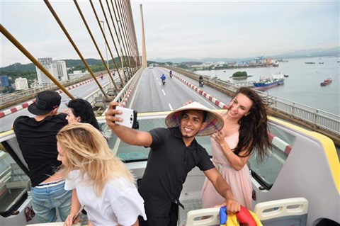 | Des touristes étrangers à Quang Ninh (Nord-Est). |