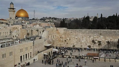 | Le Mur des Lamentations à Jérusalem, avec le dôme de la mosquée al-Aqsa en arrière-plan. |
