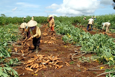 | Récolte de manioc dans la province centrale de Phu Yên. |