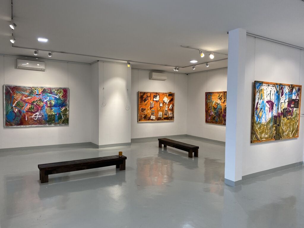 L'exposition "Présences invisibles" présente au total 13 œuvres, comprenant 12 peintures en techniques mixtes utilisant des livres comme composant principal, et une installation artistique.