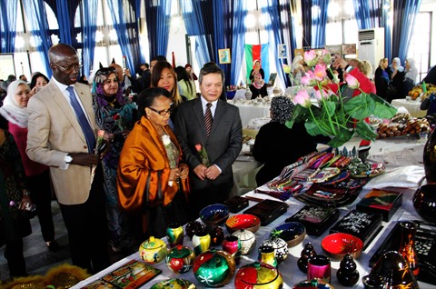 | Les visiteurs au stand du Vietnam à la Foire caritative internationale Algeria 2019. |