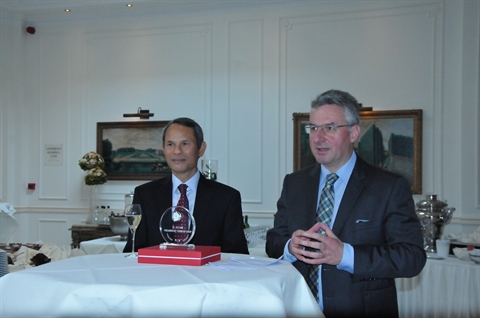 | L’ambassadeur Vuong Thua Phong, chef de la Délégation du Vietnam auprès de l’UE et le parlementaire Jan Zahradil, vice-président de la Commission du commerce international du PE et chef de ce groupe, lors de la présentation du Groupe des parlementaires européens proches du Vietnam. |