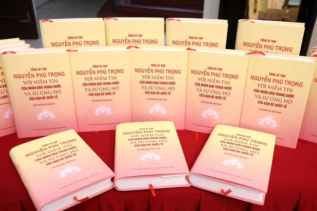 | Le livre Tổng Bí thư Nguyễn Phú Trọng với niềm tin của nhân dân trong nước và sự ủng hộ của bạn bè quốc tế. |