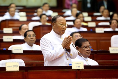 | Samdech Heng Samrin, président de l’AN du Cambodge et président d’honneur du Parti du peuple cambodgien (PPC). |