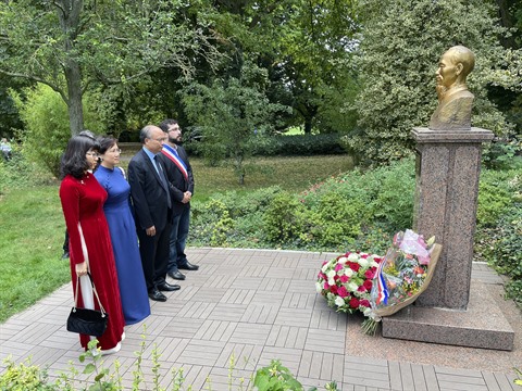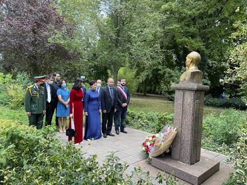 L'ambassadeur du Vietnam en France, Dinh Toan Thang, l'ambassadeur - chef de la délégation permanente du Vietnam auprès de l'UNESCO, Lê Thi Hông Vân, et le maire-adjoint de la ville de Montreuil, Florian Vigneron, ont déposé des fleurs à la statue de l'Oncle Hô. Les délégués ont observé une minute de silence en sa mémoire.