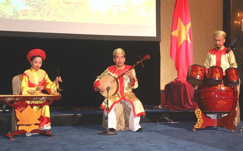 | Un numéro de démonstration des instruments de musique vietnamiens donné lors de la cérémonie d'ouverture. |