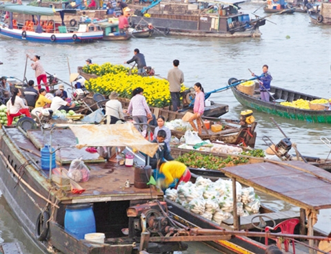 Le delta du Mékong s'étend sur une immense plaine fertile traversée par les neuf bras du fleuve. Il possède plusieurs marchés flottants comme ceux de Nga Bay (Hâu Giang), Cai Rang et Phong Diên (Cân Tho), Cai Bè (Tiên Giang), Châu Dôc (An Giang)... Lorsque le transport routier était moins pratique, la population de la région commerçait directement sur le fleuve. Mais aujourd’hui, l’activité de ces marchés diminue de plus en plus.