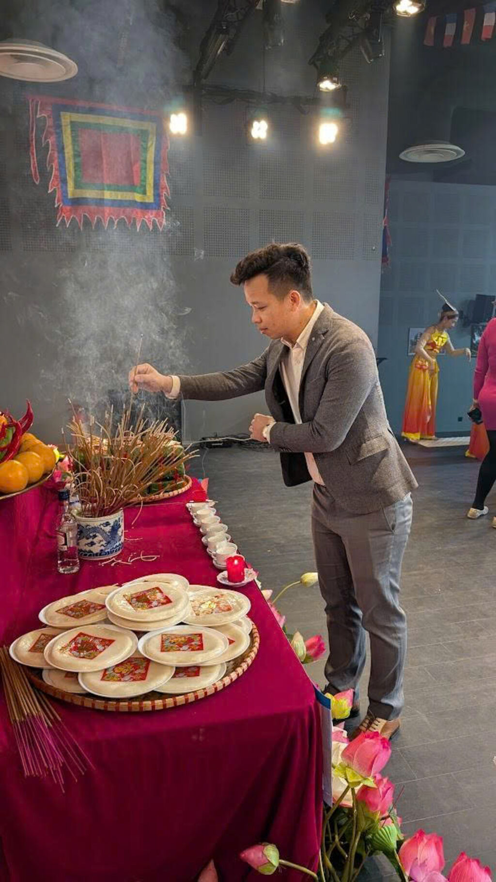 C’était la première fois que j’avais l’honneur d’être invité à cet événement, et j’en suis profondément reconnaissant. Le programme, riche de sens, s’ouvrait sur les tambours festifs et la danse du lion, suivis de prestations artistiques traditionnelles et s’achevait par une cérémonie d’offrande d’encens.