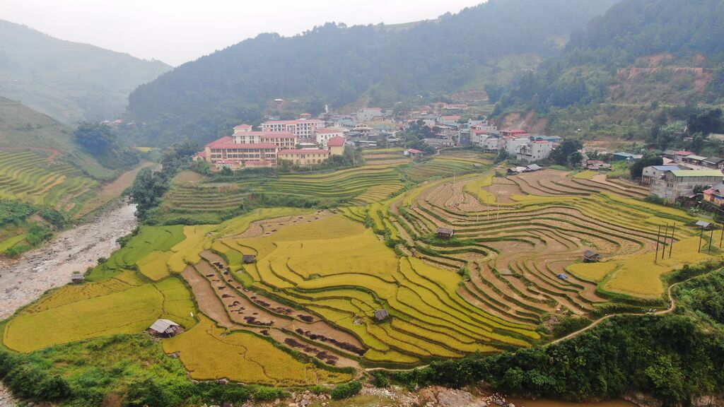 | Vue aérienne de Mù Cang Chai (province de Yên Bai). |