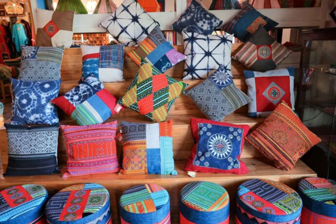 | Les motifs des tissus traditionnels Cham sont souvent variés et colorés. |