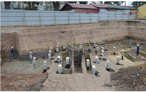 | Le vestige du culte du Ciel et de la Terre de la dynastie des Ly (1010-1225) dans le secteur central de l’ancienne cité impériale de Thang Long (Hanoi). |
