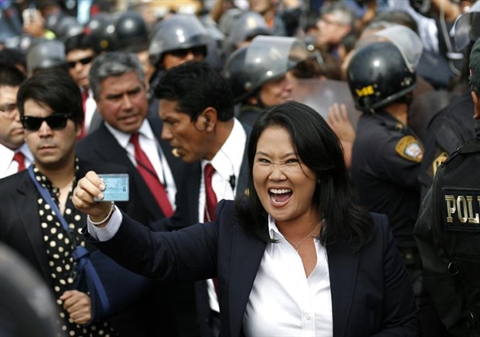 | La candidate à la présidentielle péruvienne Keiko Fujimori après le vote à Lima, le 5 juin. |