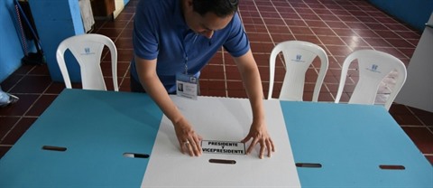 | Préparattifs dans un bureau de vote dans la ville de Guatemala, le 10 août. |