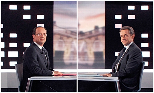 | Le candidat socialiste François Hollande (gauche) et le président sortant Nicolas Sarkzoy, candidat de l’UMP. Photo : AFP/VNA/CVN |