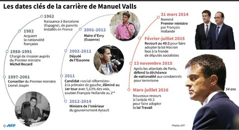 Manuel Valls déclare sa candidature à l'élection présidentielle lundi 5 décembre en fin d'après-midi au terme d'une probable ultime journée comme Premier ministre de François Hollande, quatre jours après le renoncement du chef de l'État à briguer un second mandat.