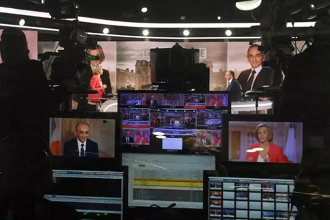 | Le débat Eric Zemmour et Valérie Pécresse sur TF1, à Boulogne-Billancourt, le 10 mars. |