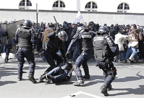 Le cortège, mené par quatre syndicats derrière une banderole proclamant "Contre les reculs sociaux, terreau de l'extrême droite", a dû s'arrêter à plusieurs reprises. Les incidents parisiens se sont déroulés en marge d'une journée de mobilisation en ordre dispersé dans toute la France : les uns appelaient à "faire barrage" à la cheffe du Front national (FN) Marine Le Pen, d'autres à voter pour le jeune centriste Emmanuel Macron et d'autres encore à "battre les deux candidats".