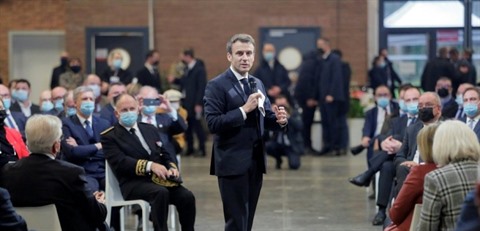 | Emmanuel Macron lors d'une réunion avec des responsables locaux dans la ville de Liévin dans le Nord, le 2 février. |