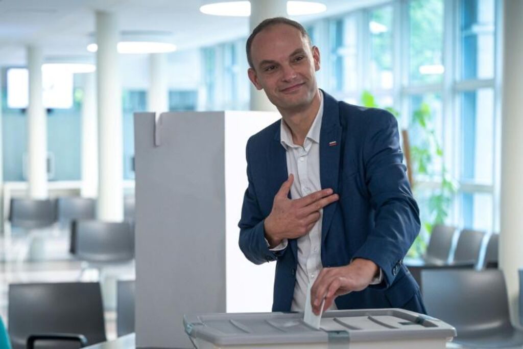 | L'ex-ministre slovène des Affaires étrangères et candidat à la présidentielle Anze Logar vote, le 23 octobre à Ljubljana. |