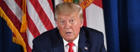| Le président américain, Donald Trump, à Bellair (Floride), le 31 juillet 2020. |