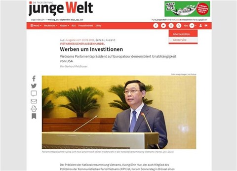 | Un article sur la visite du président de l’AN, Vuong Dinh Huê, en Europe publié sur le journal allemand Junge Welt. |
