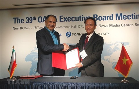| Le directeur général de la VNA, Nguyen Duc Loi (droite), et le directeur exécutif de l’agence irannienne IRNA, Mohammad Khodadi, lors la 39e réunion du Comité exécutif de l’OANA. |