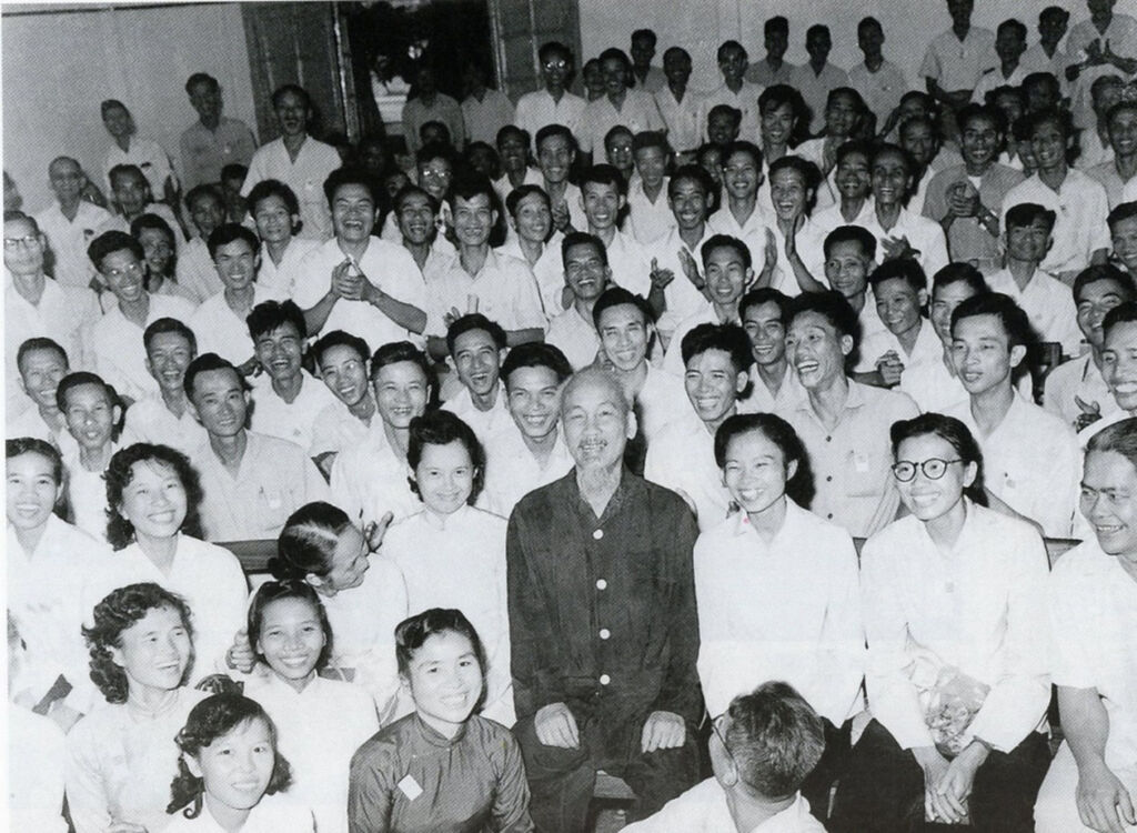 | Le Président Hô Chi Minh (centre) et les participants à la 2e Conférence nationale des journalistes en 1962. |