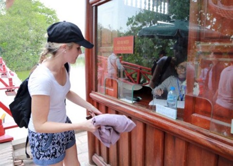 | Le temple Ngoc Son, l’un des premiers sites de Hanoï à expérimenter le prêt de tenues aux visiteurs. |