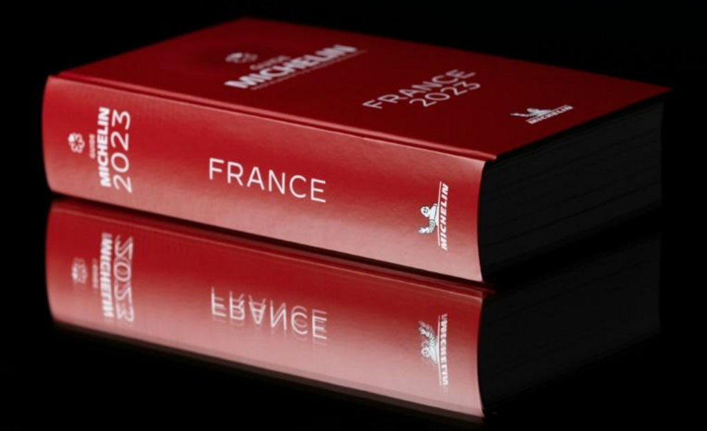| Le guide rouge Michelin 2023 pour la France, photographié le 2 mars à Paris. |