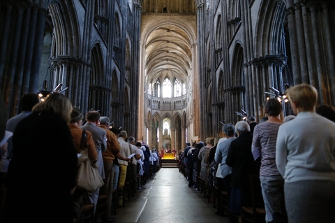 | Des fidèles assistent à la messe célébrée, le 31 juillet à la cathédrale de Rouen. |