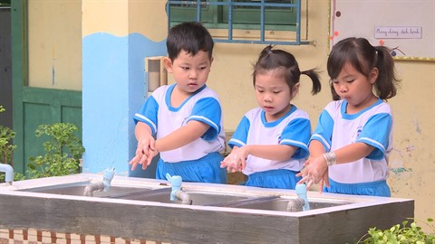 Depuis le début de l'année scolaire, les enseignants de l’école maternelle Tuôi Tho, 5e quartier, 8e arrondissement, enseignent à plus de 400 élèves les rudiments en matière d’hygiène corporelle pour une prévention efficace de la maladie pieds-mains-bouche.