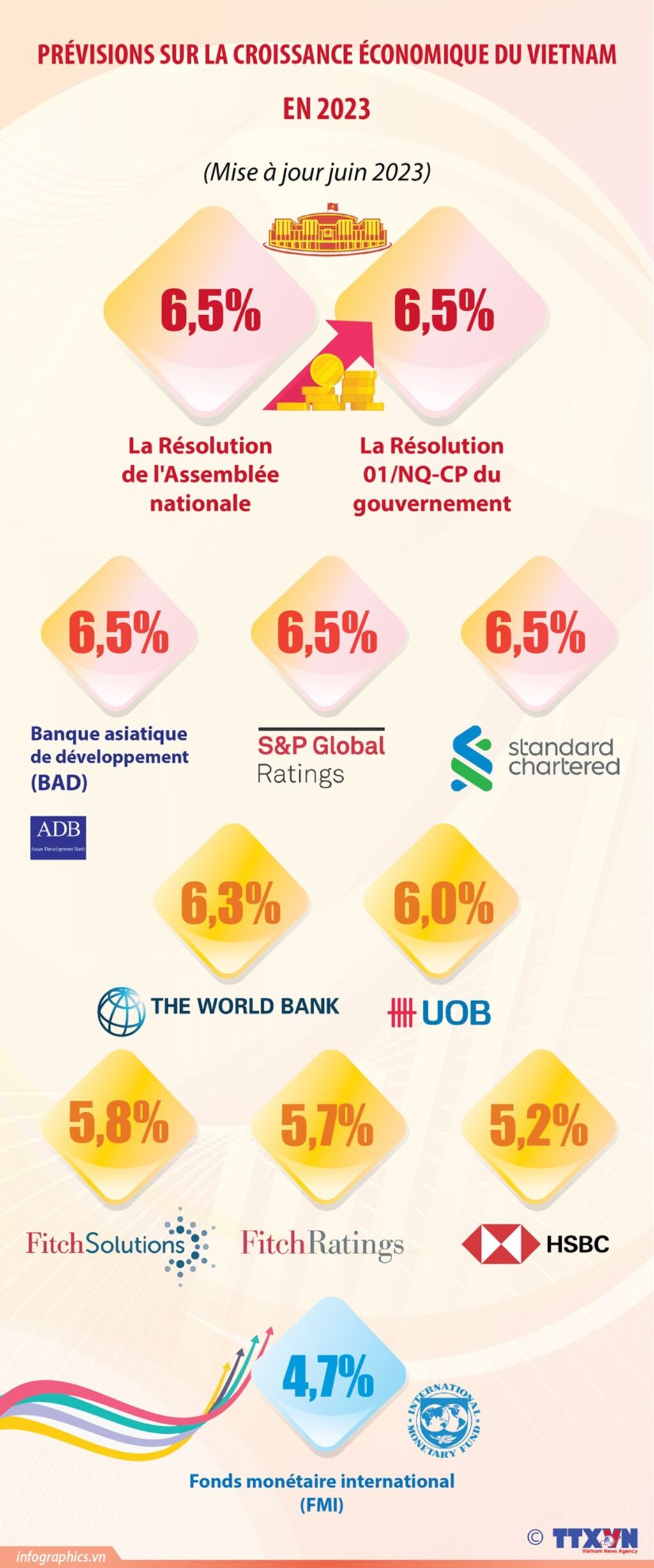La Résolution sur le plan de développement socio-économique en 2023 de l'Assemblée nationale et la Résolution N°1/NQ-CP du 6 janvier 2023 du gouvernement visent une croissance du Produit intérieur brut (PIB) du pays de 6,5% pour cette année.