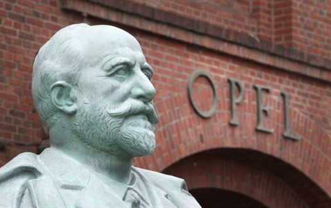 | Une statue du fondateur du constructeur automobile, Adam Opel, devant l'ancien siège du groupe à Rüsselsheim, en Allemagne, le 6 mars. |