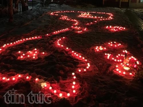 Une centaines de bougies disposées pour former la carte du Vietnam sans oublier les archipels de Hoàng Sa (Paracel) et Truong Sa (Spratly) ont été allumées le soir même en leur mémoire.
