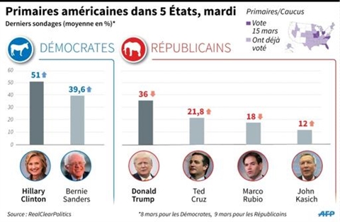 >>Primaires américaines : "super mardi 2" en forme de référendum sur Trump