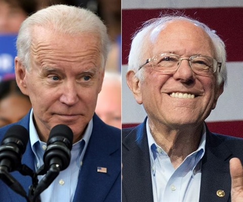 | Combo photo de Joe Biden (gauche) et Bernie Sanders |