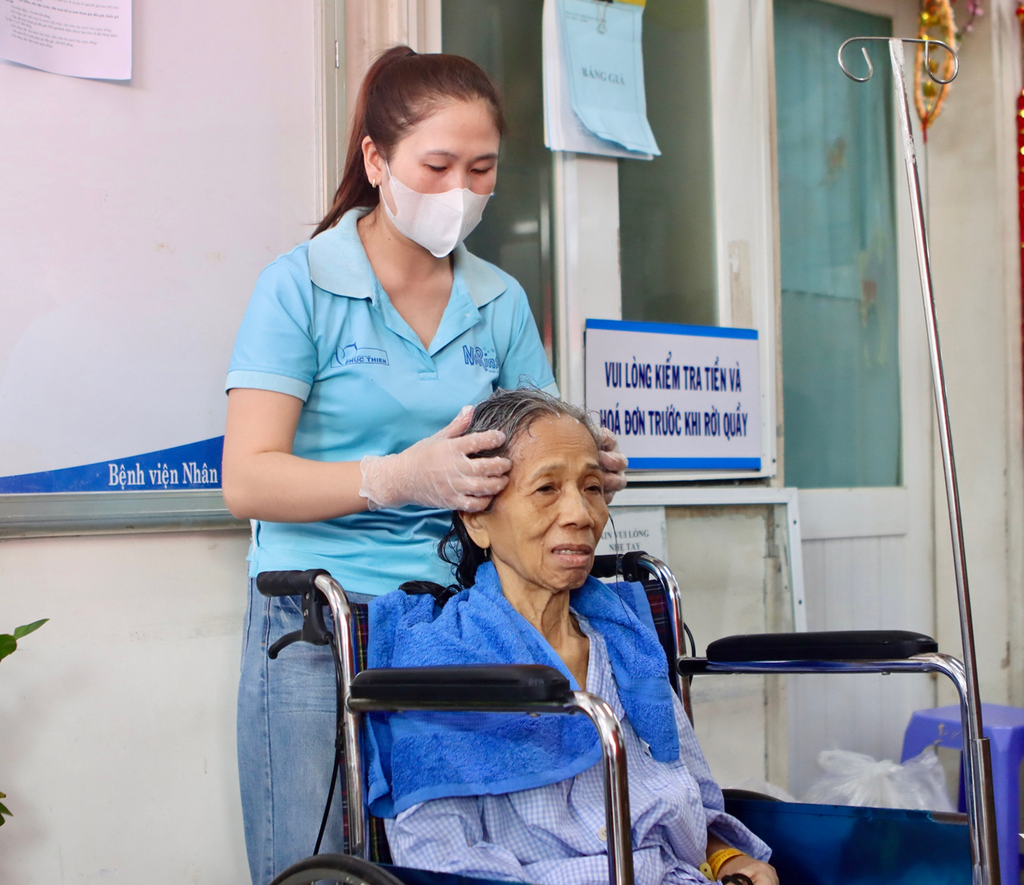 En fauteuil roulant, Nguyên Thi Tâm a quitté Gia Lai pour se rendre à Hô Chi Minh-Ville afin d’y recevoir des soins, et elle devra y rester quelque temps. À cette occasion, des bénévoles lui ont offert un shampoing et une coupe de cheveux dans l'enceinte même de l'hôpital.