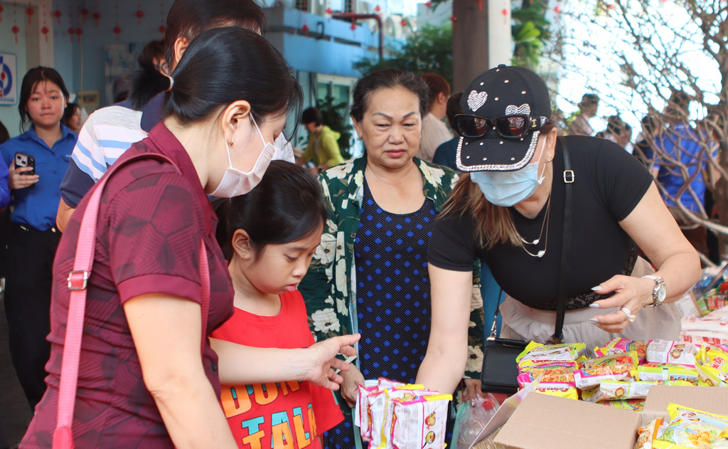 Cette activité était destinée à 150 patients hospitalisés et à 50 personnes en difficulté résidant dans le quartier de Gia Dinh. Chaque participant a reçu un panier pour faire ses courses du Têt et a pu parcourir 15 stands proposant plus de 20 produits de première nécessité.