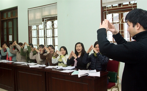 | Dans une classe du Département de l'éducation spéciale de l'École normale supérieure de Hanoi. |