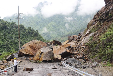 | Un glissement de terrain sur la Nationale 279D dans le district de Muong La, province de Son La (Nord). |