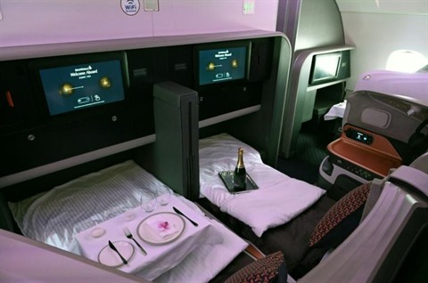 | La classe affaires d'un A380 de Singapore Airlines. |