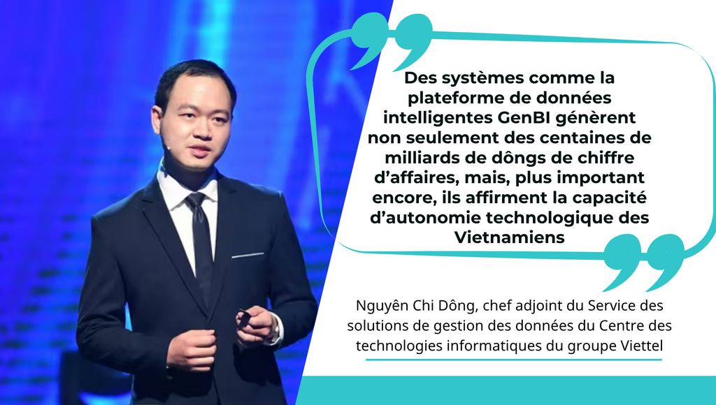 "Des systèmes comme la plateforme de données intelligentes GenBI génèrent non seulement des centaines de milliards de dôngs de chiffre d’affaires, mais, plus important encore, ils affirment la capacité d’autonomie technologique des Vietnamiens, ce qui contribue à économiser des millions de dollars en coûts d’achat de solutions étrangères. Pour le groupe seul, ces économies dépassent 9 millions de dollars", a partagé M. Dông.